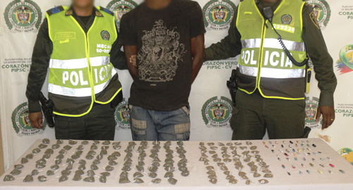 ​Alias 'el Michel', es señalado por la comunidad de ser uno de los mayores expendedores de estupefacientes en el suroccidente de la ciudad.Un hombre que se había disfrazado como habitante de la calle para eludir los controles policiales, transportando una considerable cantidad de estupefacientes, fue capturado por nuestros uniformados, en el barrio El Reposo, en el suroccidente de la ciudad.Una llamada a la línea de emergencia al número 123, alertó a nuestros uniformados de la actitud sospechosa de este hombre, quien fue abordado por las unidades adscritas al Modelo Nacional de Vigilancia Comunitaria por Cuadrantes.Durante la requisa las unidades policiales hallaron 450 dosis de marihuana y 50 dosis de basuco, ocultas en el interior de varias botellas de vidrio transportadas en una bolsa, por quien es conocido en la zona como alias 'Michel'.El capturado fue identificado de 22 años de edad, natural de Cartagena, quien fue dejado a disposición de la Fiscalía por el delito de tráfico, fabricación y porte de estupefacientes.