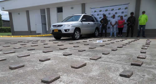 En operativos de control y registro en puntos de ingreso a la capital huilense, miembros de la Compañía de Operaciones Antinarcóticos y personal de la Unidad de Investigación Criminal de Antinarcóticos se incautaron de 61 kilos y 750 gramos de base de coca.En un puesto de control desplegado sobre la vía Neiva – Fortalecillas, unidades policiales interceptaron una camioneta en la que fueron hallados 98 paquetes con 61 kilos y 750 gramos de base de coca, estupefaciente valorado en 155 millones de pesos, oculto en las puertas, baúl y respaldos de los asientos. Durante el operativo policial fueron capturadas dos personas que fueron dejadas a disposición de la Fiscalía por el delito de tráfico, fabricación o porte de estupefacientes.