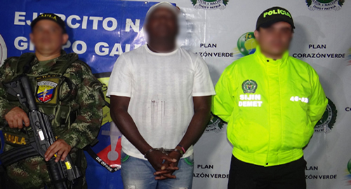 La Seccional de Investigación Criminal de la Policía en coordinación con la Fiscalía General de la Nación y tropas del Ejército, logró la captura de este sujeto, señalado como el presunto jefe de la red urbana de la banda criminal bloque Meta que delinque en la región del Ariari.La captura de este hombre, se da gracias a la información de una fuente de humana y luego de un intenso operativo policial, desarrollado en el barrio Villa Margarita del municipio de Fuente de Oro, donde fue notificado de la orden de captura en su contra por el delito de homicidio agravado.Así mismo, es investigado por su presunta participación en amenazas y cobros de cuotas extorsivas exigidas a comerciantes, ganaderos y agricultores de la región.Alias "El Negro o Ruperto", fue puesto a disposición de la autoridad competente.