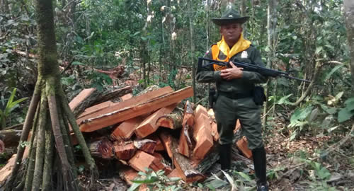​En desarrollo de labores de contra la explotación ilícita de los recursos forestales, el grupo de Carabineros en coordinación con funcionarios de Cormacarena, realizaron en zona rural de la Vereda Nare, una intervención a un sitio que venía siendo objeto de la tala indiscriminada de árboles, sin autorización de esta autoridad ambiental competente.Al llegar al lugar, fue encontrado un perímetro talado y se halló un centro de acopio de la madera talada; en este mismo sitio, se encontraron 160 metros cúbicos de madera tipo cachicamo, laurel y cedro, avaluados en 600 mil pesos.