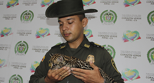 Personal del Grupo de Protección Ambiental y Ecológica, atendiendo el llamado de la comunidad, dónde el propietario de un tigrillo lo entrego puesto le estaba suministrando alimento concentrado para gatos, por lo que presentó vómito y diarrea y decide entregarlo para que recibiera atención médica especializada.Este animal silvestre fue dejado a disposición de la Corporación Autónoma Regional para la Defensa de la Meseta de Bucaramanga CDMB, quien lo rehabilitará en la finca la esperanza, para posteriormente ser devuelto a su hábitat natural, Es de anotar que estas especies silvestres deben permanecer en su hábitat natural y no deben ser extraídas con el fin de mantenerlas en cautiverio como mascotas en las diferentes viviendas del aérea urbana.
