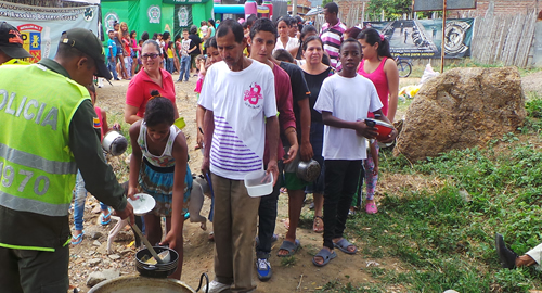 Al calor de la leña y alrededor de una gran olla se llevaron a cabo la mezcla de diferentes ingredientes entre ellos dos esenciales: 1. enseñar medidas de autocuidado para prevenir el hurto a residencias,  2. Alejar la violencia de la convivencia para terminar con las riñas y homicidios".Complacidos de ser atendidos por el grupo de uniformados policiales, además del personal de auxiliares bachilleres, la patrulla del cuadrante No.7 y algunos integrantes que se vincularon del Ejército Nacional al igual líderes comunitarios, se logró la armonía del delicioso almuerzo comunitario. De esta manera fueron compartidos más de 300 almuerzos con niños, jóvenes y adultos de este sector vulnerable, quienes en muchas ocasiones no pueden acceder a un plato de comida especial por la misma situación económica que padecen en donde hasta los mismos recursos básicos, espacios lúdicos o recreativos son escasos.En este sentido al final se estimó que 500 ciudadanos acudieron, lo cual fue una grata respuesta que motivó a los gestores, teniendo en cuenta que estuvo centrada en el mensaje clave de contribuir al fortalecimiento de valores cívicos, culturales, sociales y éticos con los cuales se pretende avanzar hacia un cambio de comportamiento y actitud para hacer de lado los factores generadores de violencia en los barrios  del departamento del Valle.De la misma manera cerrando la tarde se realizaron actividades lúdicas, recreativas y una campaña educativa para terminar de amenizar  una de las mejores tardes compartidas con los vecinos del barrio La Ceiba.​