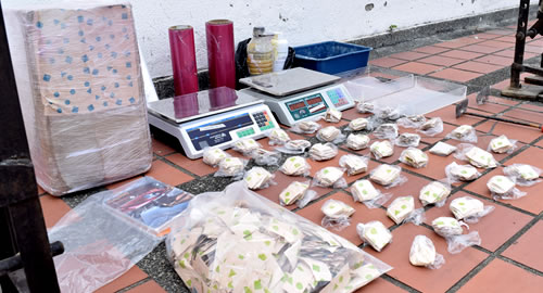 Las acciones Policiales se desarrollaron mediante la ejecución de tres órdenes de registro y allanamiento simultáneos en la vereda el Jordán de esta localidad, donde se logró la incautación de dos máquinas industriales para el empaque de sustancias estupefacientes "papeletas de bazuco", tres mil setecientas dosis de bazuco listas para ser distribuidas, dos basculas, siete paquetes de papel adhesivo con figuras geométricas y demás elementos utilizados para el procesamiento.Este resultado afecta considerablemente el accionar delictivo y las finanzas de la organización delincuencial denominada "Cordillera", dedicada al tráfico de narcóticos; con la incautación de estas máquinas y el estupefaciente se saca de circulación el más grande de los centros de acopio y distribución de bazuco, el cual se comercializa mediante la modalidad de expendio callejero en varios sectores de la ciudad de Pereira, logrando con ello que las dosis caigan en manos de los consumidores, generando así una mejor percepción de seguridad ciudadana a los habitantes de esta jurisdicción.El principal fenómeno de afectación a la seguridad ciudadana, se deriva del tráfico local de estupefacientes; actividad delictiva que se encuentra monopolizada por la red delincuencial enunciada anteriormente, siendo la estructura que posee el monopolio de la comercialización frente al mercado interno que se presenta en los municipios de Pereira, Dosquebradas y la Virginia.Las maquinas incautadas tienen una capacidad de sellar treinta mil papeletas diarias de bazuco, dejando ganancias diarias de sesenta millones de pesos los cuales financiaban la organización, estas maquinas venían siendo utilizadas desde sus inicios como organización delincuencial denominada Cordillera desde el año 2006.Continuaremos ejecutando planes operativos que garanticen la seguridad de todos los Pereiranos, invitando a la  comunidad a trabajar mancomunadamente en la construcción de sociedades pacíficas y en paz.