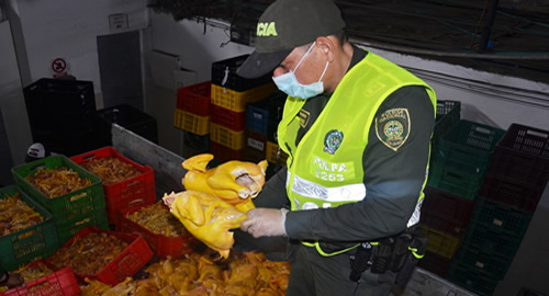 Cúcuta. En la acción policial fueron incautados 2.670 kilogramos del alimento y 671 aves en pie sin las condiciones de salubridad.