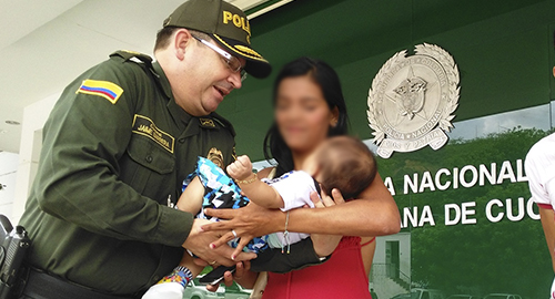 En medio de un operativo desplegado por todos los barrios de la ciudad y que duró aproximadamente 20 minutos, fue detenida en flagrancia una mujer de 25 años de edad por personal del Grupo de Reacción Cobra, cuando permanecía con el bebé en sus brazos al interior de una cancha sintética del barrio Caobos de Cúcuta.El caso se conoció cerca de las cinco de la tarde, luego que el abuelo del pequeño le reportara a uno de nuestros uniformados, que una mujer mediante engaño y manifestando ser funcionaria de la Fiscalía, se habría llevado con rumbo desconocido a su nieto de cuatro meses de edad a bordo de un taxi.Teniendo en cuenta el número de placa del vehículo de servicio público entregado por el ciudadano y un tatuaje en forma de mariposa que tendría la mujer en su espalda, se activó la búsqueda del automotor apoyados en las comunicaciones con la red de apoyo de taxistas y los uniformados de los microcuadrantes de la ciudad.Rápidamente personal del cuadrante del Comando de Atención Inmediata (CAI) San Rafael logró ubicar al taxista que transportó a la mujer, quien señaló que minutos antes habría terminado el servicio a la altura de la avenida cero con calle diez del centro de la ciudad.De inmediato con todos los microcuadrantes y grupos especializados se empezó hacer un barrido de inspección en los alrededores, llegando hasta la cancha de fútbol donde fue ubicada la mujer. Al ser indagada por su parentesco con el pequeño, inicialmente señaló que era su hijo. Sin embargo por las características físicas se estableció que se trataba del bebé que minutos antes habían reportado como raptado.La mujer fue capturada de inmediato y en coordinación con el Grupo de Protección para la Infancia y Adolescencia, se inició el proceso administrativo de restablecimiento de derechos del menor, quien posteriormente sano y salvo fue entregado a sus familiares.Se continúa con las investigaciones para establecer los móviles que estarían detrás de este caso y los fines delictivos que tendría la mujer con el infante.La capturada fue dejada a disposición de la Unidad de Reacción Inmediata (URI) de la Fiscalía.