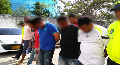 Entre los capturados figuran alias 'marvil', cabecilla de la organización criminal y responsable del pago de la nómina, producto del cobro de extorsiones a tenderos, comerciantes y propietarios de estaciones de servicio y seis integrantes más por los delitos de concierto para delinquir, homicidio agravado y extorsión.Esta banda desarticulada era reducto de 'los rastrojos', capturados 19 de sus integrantes al parecer dedicados a la extorsión a comerciantes y a la ejecución de homicidios bajo la modalidad de sicariato en una operación desplegada por nuestra Institución en coronación con la Fiscalía el año inmediatamente anterior.Finalmente fueron dejados a disposición de la Fiscalía, mientras avanzan los operativos con el apoyo de la ciudadanía para hacerle frente a la delincuencia.