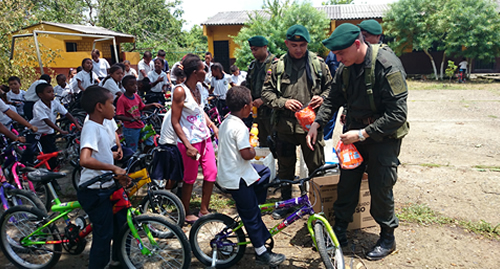 Funcionarios de la empresa petrolera y policías adscritos al grupo GOES de Hidrocarburos Magdalena, visitaron las Escuelas Rurales ubicadas en aproximaciones a los poliductos en los Departamentos de Atlántico, Bolívar y Magdalena, en donde acompañados de docentes, padres de familia y comunidad en general, efectuaron la entrega formal de 200 bicicletas para los estudiantes de estos planteles educativos.Desde hoy, los recorridos hacia la Escuela serán mucho más cómodos, fáciles y rápidos, teniendo en cuenta que la empresa colombiana de petróleos y su área de gestión social en conjunto con la Policía de Hidrocarburos han venido trabajando en pro de la educación de los niños socialmente más vulnerables, en especial de aquellos que habitan en cercanías a sus poliductos.La labor diaria de los hombres GOES H, de la Policía Nacional, permitieron conocer de cerca las innumerables dificultades que aquejan a los estudiantes de las escuelas rurales, quizás la más relevante se debe a la distancia que hay entre sus hogares y el plantel educativo, una gran mayoría tiene que recorrer más de 2 horas a pie para llegar al colegio, convirtiendo ésta, la razón por la que muchos abandonan el estudio."Esta situación nos preocupó enormemente, y quisimos de alguna manera ser parte de la solución", es por ello, que desde inicio de año adelantamos las gestiones correspondientes y solo hasta el mes de septiembre pudimos concretar la donación de 200 bicicletas, las cuales serán de gran ayuda para estos jóvenes y sus familias. Afirmó uno de los hombres Goes gestores del proyecto.Mientras se consolidaba este sueño, nuestros policías aprovecharon para acercarse a los niños y padres de familia, con quienes se realizaron diversas actividades de tipo comunitario, fortaleciendo la percepción de seguridad de estas comunidades. Los beneficiados fueron niños de las escuelas rurales de la Vereda Paiva del municipio de Santa Catalina – Bolívar, vereda La Puntica del municipio de Luruaco – Atlántico, Bello Horizonte del corregimiento de Santa Rosalía del municipio de Zona Bananera – Magdalena y Macaraquilla del municipio de Aracataca – Magdalena, todos vecinos y habitantes aledaños a los poliductos de la empresa gestora.Este tipo de actividades enorgullecen la labor policial y denotan los valores que caracterizan al hombre y mujer policía, porque su vocación les permite comprometerse con las necesidades de la comunidad, de igual manera los impulsa a continuar trabajando con mayor entrega por el bienestar y la seguridad de los ciudadanos.