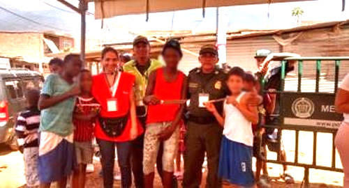 ​En el marco del programa "Tratamiento Integral de Pandillas" desarrollado por nuestros gestores de convivencia y participación ciudadana, el  cuadrante social 18 realizó una jornada de sensibilización y desarme con los niños y niñas del sector de las Palmas de la comuna 18 – Meléndez.En la actividad participaron más de 800 menores entre los 4 y los 14 años de edad que armados de valor decidieron entregar sus juguetes bélicos y armas blancas por kits escolares. Ellos, recibieron una charla educativa en el tema no al uso de las armas, de rechazo a los actos delictivos y disfrutaron de actividades lúdico – recreativas.La actividad permitió que se lograra recolectar una granada de aturdimiento táctica (inactiva), 559 armas blancas y 275 juguetes bélicos.  Cabe resaltar que se contó con el apoyo de la Fundación Los del Camino y Bancomeva que se unieron a esta iniciativa de la Institución policial en beneficio de la infancia y la adolescencia.La Policía continuará realizando este tipo de actividades en diferentes zonas de la ciudad, haciendo un acompañamiento permanente a la población vulnerable, comprometidos siempre con el mantenimiento de la convivencia y seguridad ciudadana.