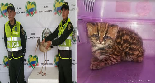 Encaminados en la protección de los recursos naturales y el medio ambiente, la  Policía Nacional a través de las patrullas del Modelo Nacional de Vigilancia Comunitaria por Cuadrantes, viene adelantando una serie de planes de vigilancia y control para la protección animal.Es así, que en el barrio Libertador y la vereda Gualas del municipio de San Martín, se realizó el rescate y hallazgo de un tigrillo (Leopardus Tigrinus) y una garza, los cuales se encontraban extraviados de su hábitat natural.Por otra parte, en el sector de La Rivera del rio Ariari jurisdicción del municipio de Puerto Rico, permitieron la incautación de 40 kilos de pescado, la captura  de un hombre de 42 años de edad, quien se encontraba violando el Estatuto Nacional de Pesca.  Las especies, avaluadas en más de seis millones de pesos, fueron dejados a disposición de Cormacarena para su protección, y el pescado, fue donado en coordinación con la Inspección de Policía de Puerto Rico al Centro de Protección Social del Adulto Mayor.
