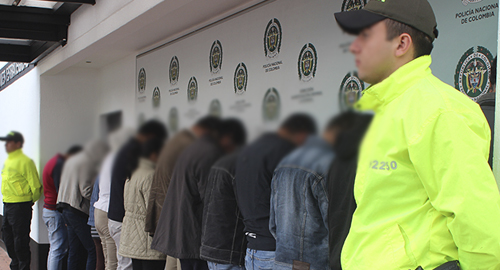 En el marco de la política de seguridad ciudadana y con el fin de desmantelar estructuras dedicadas a delinquir, funcionarios adscritos al Grupo Investigativo Contra Atracos de la DIJIN desarticularon en Bogotá una organización conformada por 16 personas quienes se dedicaban al hurto de clientes de entidades financieras en Bogotá y Cundinamarca, mediante la falsificación de cheques y obtención de información privilegiada.El proceso investigativo se originó gracias a las denuncias instauradas por las víctimas, logrando establecer la existencia de una organización criminal dedicada al fraude con títulos valores o cheques. Dentro de su actuar delincuencial la estructura contactaba a empleados de la entidad financiera quienes se encargaban de suministrar información confidencial de los clientes. La modalidad delictiva desarrollada por esta estructura criminal se fundamentaba en las siguientes características:La existencia de un agente corruptor, encargado de captar a los empleados de la entidad financiera, con el fin de obtener información privilegiada y protocolos de seguridad.Complicidad con algunos funcionarios que laboran en la entidad bancaria, quienes suministraban datos de los clientes a terceros.Personas encargadas de falsificar las firmas y títulos valores, con los cuales se realizaban las defraudaciones a los usuarios del banco.De esta manera estafaban a los clientes mediante tres modalidades: obteniendo del banco la entrega de chequeras con documentación falsa; pago de cheques originales con la falsificación de condiciones de pagos, es decir mediante la alteración de firmas en cheques originales hurtados a personas naturales o jurídicas y pago de cheques duplicados.Dentro de los capturados se encuentra el cabecilla de la organización, dos empeladas de la corporación bancaria afectada y 13 facilitadores y cobradores de cheques.Actualmente se encuentran vinculados a 40 fraudes que superan los 1.225 millones de pesos del patrimonio económico de personas naturales y jurídicas. Todos los capturados aceptaron los cargos imputados y fueron cobijados con medida de aseguramiento en establecimiento carcelario.
