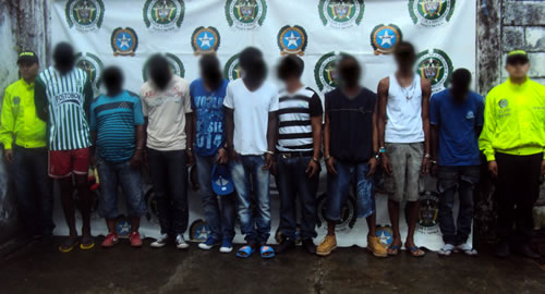En desarrollo de operaciones de alto impacto tendientes a desmantelar estructuras que delinquen en Chocó y Buenaventura (Valle del Cauca), la DIJIN, en coordinación con la Fiscalía General de la Nación, capturó a 64 integrantes de la banda criminal "Clan Úsuga' y la organización delincuencial "la Empresa".En el puerto del pacífico colombiano, los investigadores de la Policía Nacional ubicaron a 48 criminales de dos organizaciones responsables de violentas confrontaciones, entre ellos a Eber Alegría, alias "Liso Negro" máximo cabecilla del "Clan Úsuga" en esa región del país y quien heredó el aparato sicarial de esa estructura tras la captura de alias "Resorte" en febrero de este año.Este criminal perteneció al frente 30 de las Farc, Manuel Cepeda Vargas desde el año 1998 hasta 2006, cuando fue capturado por el delito de rebelión. Al recobrar su libertad  se unió a la  conformada banda delictiva "la Empresa" (brazo armado de los rastrojos), en la que  después de varios años, se posicionó  como narcotraficante y cabecilla financiero. En 2012 se cambió de bando y al sellar alianzas con narcotraficantes de Buenaventura conocidos con el "Clan Bustamante" (todos hermanos y varios en proceso de extradición), promovió el ingreso a sangre y fuego de la banda criminal del "Clan Úsuga", con el fin de apoderarse de las rutas del narcotráfico que parten del pacífico colombiano a su vez,  cobrar una cuota a otros vándalos quienes pretenden sacar  estupefacientes desde esa región del país.Los otros 47 capturados eran los encargados de ejecutar homicidios selectivos y promover el cobro de extorsiones a comerciantes, con el fin de nutrir los ingresos ilícitos de la estructura. Se les señala de 22 muertes en los últimos seis meses en Buenaventura. Todos fueron judicializados y enviados a diferentes cárceles del departamento de Valle de Cauca. Otros dos delincuentes con pasado en banda "La Empresa", rival del "Clan Úsuga" fueron informados en prisión de los procesos en su contra.