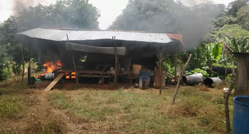 Durante el desarrollo de la Estrategia Integral Contra el Narcotráfico, la Policía y el Ejército Nacional gracias al trabajo investigativo e información suministrada por la comunidad, se llevaron a cabo operativos en zona rural de este municipio, logrando la destrucción y judicialización de un laboratorio rústico e insumos para el procesamiento de estupefacientes.Los operativos se ejecutaron en la vereda Horizonte, zona rural del municipio de La Montañita, hasta donde llegaron los funcionarios de la Escuadrón Móvil de Carabineros y Antiterrorismo (EMCAR) con el apoyo del Ejército Nacional, localizando un laboratorio rústico para el procesamiento de alcaloide fabricado en estructura de madera con techo de zinc; donde se encontraron los siguientes elementos: (110) galones de gasolina preparada con alcaloide, (330) galones de gasolina corriente, (200) kilos de cemento, (05) kilos de soda caustica y (100) arrobas de hoja de coca; elementos avaluados en $4.230.680; en el lugar de los hechos no se presentaron capturas.Los elementos encontrados fueron destruidos en el lugar de los hechos y las diligencias judiciales fueron dejadas a disposición la Fiscalía de turno URI por los delitos de conservación y financiación de plantaciones (Art. 375), trafico fabricación o parte de estupefacientes (Art 376), destinación ilícita de muebles e inmuebles (Art 377 del C.P).En segunda acción, unidades de la Policía y el Ejército Nacional gracias al trabajo investigativo e información suministrada por la comunidad, en la vereda La Serranía, vereda Bella Vista, vereda Juanchito, lograron la ubicación, destrucción y judicialización 19 laboratorios rústicos e insumos para el procesamiento de estupefacientes.Finalmente los operativos ejecutados por los funcionarios del Escuadrón Móvil de Carabineros y Antiterrorismo (EMCAR), con el apoyo del Ejército Nacional, pemiten la destrucción de varios laboratorios rústicos para el procesamiento de alcaloide fabricado en estructura de madera con techo de zinc; donde se encontraron los siguientes elementos: 1724 galones de gasolina preparada con alcaloide, 932.684 galones de gasolina corriente gramos de base de coca, 397 arrobas de hoja de coca, 1015 galones de gasolina corriente, 703 arrobas de hoja de coca picada, 496 kilos de cemento, 35 kilos de soda caustica, 29 litros de veneno para fumigación del cultivo, 24 prensas, 01 pesa y 40 kilos de abono, elementos que fueron avaluados en $80.000.000; en el lugar de los hechos no se presentaron capturas.Los elementos encontrados fueron destruidos en el lugar de los hechos y las diligencias judiciales fueron dejadas a disposición la Fiscalía de turno de este municipio, por los delitos de conservación y financiación de plantaciones (Art. 375), trafico fabricación o parte de estupefacientes (Art 376), destinación ilícita de muebles e inmuebles (Art 377 del C.P).