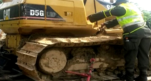 La Policía logra inmovilizar maquinaria amarilla en la vía Bucaramanga-San Alberto en el Kilómetro 35+400. El procedimiento policial se llevó a cabo por parte de la Seccional de Tránsito y Transporte mediante punto de control se logró detectar un vehículo especializado que al parecer iba ser utilizado para excavaciones de minería ilegal.El motivo de la detención de este automotor fue no presentar documentos que acredite su legalidad en territorio nacional.