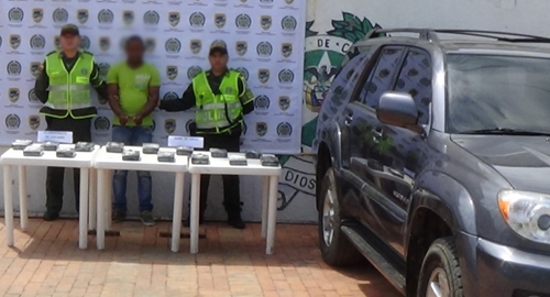 Uniformados que se encontraban realizando un operativo en el sitio conocido como la Mata cerca a la localidad de San Roque mediante la modalidad de antecedentes a personas y registros a vehículos identificaron un automor, tipo camioneta que luego de un registro se le halló en su interior 11 kilos más 300 gramos de base de coca.De igual manera en el mismo vehículo se halló 5 kilos de clorhidrato de cocaína toda esta droga supera los 72 millones de pesos, inmediatamente se realiza la captura de un hombre de 34 años de edad como el presunto responsable del transporte de este estupefaciente.Él capturado, el estupefaciente y el vehículo fueron dejados a disposición de la Fiscalía.