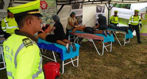 La Seccional de Tránsito y Transportes (Setra) de la Policía Metropolitana de Cúcuta (Mecuc) puso en marcha un plan integral de seguridad vial para acompañar a los viajeros durante la temporada vacacional de mitad de año.Con un 'Spa móvil' y al ritmo de la canción de champeta titulada "Su amigo en el camino", se activa un dispositivo de seguridad vial que involucra la participación de alrededor de 250 uniformados quienes acompañarán a los viajeros haciendo presencia en las vías, entregando información permanente sobre el estado de los ejes carreteables y brindando asistencia en la terminal de transporte terrestre.​El 'Spa móvil' consiste en una carpa habilitada transitoriamente como centro de relajación para los conductores que hacen una pausa activa de sus funciones. Aleatoriamente y teniendo en cuenta principalmente los buses de servicio público que cubran las rutas más largas saliendo desde Cúcuta hacia la Costa Atlántica y el interior el país, se brinda el servicio gratuito de masajes corporales. Personal experto en esa área de salud por períodos aproximados de diez minutos realizan la sesión de masajes, buscando evitar que durante los recorridos se presenten casos de accidentes de tránsito producto del cansancio o lo que comúnmente se conoce como 'fatiga por sueño'.​A los conductores también se les practica la prueba de alcoholemia para descartar que estén al volante bajo el efecto del alcohol. Además reciben volantes con recomendaciones de seguridad vial entre ellas no exceder los límites de velocidad, no adelantar en línea continua, no conducir en estado de embriaguez, no llevar sobrecupo y no recoger pasajeros que no estén etiquetados previamente en las oficinas de las empresas de transporte legalmente constituidas. Igualmente, se les recuerda la necesidad y la importancia de dormir mínimo cinco horas antes de tomar el recorrido y contar con un conductor suplemente, garantizando así que no se presenten accidentes de tránsito por micro sueño. Dentro del plan integral de seguridad vial, también se cuenta con el servicio de una grúa, acompañamiento de personal de los organismos de socorro y una unidad móvil judicial, con el objetivo de atender oportunamente cualquier eventualidad o accidente que se presenten en los ejes carreteables.Es importante que los conductores respeten los límites máximos de velocidad establecidos que corresponden a 80 kilómetros por hora en vías rurales y 60 kilómetros por hora en vías urbanas. Para regular esta restricción se tendrán en funcionamiento puestos de regulación de velocidad con el apoyo de radares.​Adicional a los planes de acompañamiento, regulación e información vial, también se socializa la canción 'Su amigo en el camino', pieza musical compuesta por un uniformado de la Policía Nacional y que se convierte en una herramienta pedagógica que exhorta a los usuarios viales a adoptar comportamientos seguros, prevenir la accidentalidad y a que vean a los uniformados como amigos. Se busca que esta canción que se encuentra disponible en la cuenta de twitter  @transitopolicia, se escuche en los lugares de mayor afluencia de público, sitios de esparcimiento, buses de servicio público de pasajeros, terminales de transporte, entes educativos y escuelas de conducción, entre otros espacios que permita fortalecer la cultura del respeto por las normas de tránsito. Serán más de doscientos uniformados de la Seccional de Tránsito y Transporte (Setra) quienes acompañarán a los viajeros y conductores durante sus recorridos y en sus estancias en la terminal de transporte terrestre de Cúcuta y municipios aledaños. Ante cualquier emergencia pueden comunicarse gratuitamente a través de la línea gratuita #767.