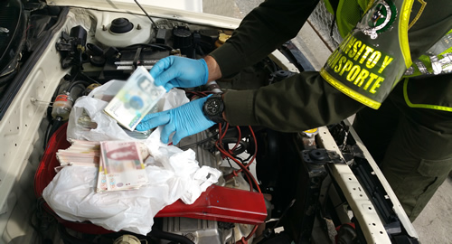 En el sector conocido como Guayacanes jurisdicción del municipio de Chinchiná, unidades adscritas a la Seccional de Tránsito de Transporte ubicaron un vehículo en el que se movilizaban dos personas de manera sospechosa. Tras inspeccionar el automotor y requisar a los ocupantes, los policiales hallaron 9 paquetes con $47´560´000 en billetes de 20 mil, $ 28´830´000 en billetes de 10 mil y $ 2´500´000 en billetes de 5 mil.Los billetes al parecer presentaban alteraciones en su papel, y fue evidenciadoque se trataba de moneda falsa una vez fueron verificados por documentólogos de la unidad de criminalística. Estas personas procedentes desde la ciudad de Medellín y con destino a Pereira, junto al vehículo y la moneda falsa fueron dejadas a disposición de la Fiscalía.