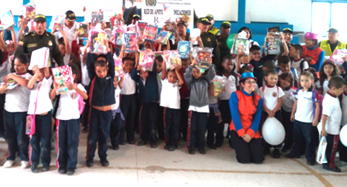 Alumnos de preescolar y primaria se vieron beneficiados con la entrega de 400 kits escolares La Policía Nacional está acompañando de forma continua cada una de las instituciones educativas teniendo a mejorar las condiciones de convivencia y seguridad ciudadana.Es por esto que la Policía Metropolitana de Pereira bajo el liderazgo del señor Coronel Ricardo Augusto Alarcón se llevó a cabo el día de ayer la entrega de 400 kits escolares a estudiantes de esta institución educativa los cuales serán de gran utilidad para su periodo de formación.En compañía de funcionarios de la especialidad de prevención y educación ciudadana un grupo de infancia y adolescencia, personal de la red de apoyo y comunicaciones y personal de la estación de Policía Dosquebradas, se realizó la gran actividad en donde se beneficiaron un total de 240 niños y niñas.Los infantes además disfrutaron de las recreativas preparadas por el grupo "caritas felices", al igual gozaron de un espectáculo cultural por parte de los guías caninos de la especialidad de carabineros de la Policía.Dentro de la jornada se destacan los mensajes alusivos a prevenir situaciones como el matoneo estudiantil, consumo y venta de estupefacientes, riñas al interior y entornos escolares, bulling y deserción escolar los cuales hicieron parte de las lúdicas y enseñanzas impartidas.