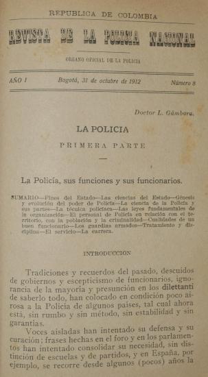 Revista Policía Nacional edición Nro. 8 Primera época Revista de la Policía Nacional Unidad Oficina de Comunicaciones Estratégicas Mes publicación Tuesday, October 1, 1912 - 12:00 Edición 8 revista-policia-nacional-edicion-8-primera-epoca.pdf0 bytes