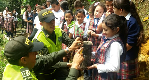 En la tierra de la Tribu Pantágoras, descendiente de los indios Caribes, ubicada en el Oriente de Caldas, región que se caracteriza por altas precipitaciones que generan una gran red hidrográfica y que convierten la zona en potencial hídrica, se encuentra ubicado el municipio de Samaná, que cuenta con la fortuna de tener hombres y mujeres Policías con vocación de servicio, entrega a la comunidad y con alto compromiso ambiental.Personal uniformado adscrito a la estación de Policía del municipio de Samaná, comprometidos con el cuidado y la protección del medio ambiente, se llevó a cabo una serie de actividades encaminadas al cuidado del medio ambiente en esta región del departamento. La actividad de reforestación se desarrolló en tres sectores de este municipio, el primero fue en la Bocatoma de Villeta donde nace el agua que surte a todo esta localidad, allí se realizó la siembra de 50 árboles, seguidamente 50 árboles más en la micro cuenca de Santa Inés que surte de agua a todo el municipio de Samaná y finalmente 50 árboles más en el Centro Cultural agua y miel, lugar donde habitual mente funciona la casa de la cultura.Esta campaña busca concientizar a toda la comunidad sobre el cuidado del medio ambiente, como también se hizo énfasis en el ahorro de energía, lo cual permite conservar aquellos sitios de nacimientos de agua.La Policía Nacional continuara trabajando arduamente y realizando actividades de prevención y de acercamiento con la comunidad, donde les creara e inculcara la importancia por el medio ambiente por el cambio del comportamiento con respecto al cuidado de los entornos naturales, lo teniendo en cuenta que este es un trabajo de corresponsabilidad social.Heredemos a nuestro hijos, un planeta sano, libre de contaminación, conviértete en un defensor del medio ambiente, "Sembrando por un futuro".