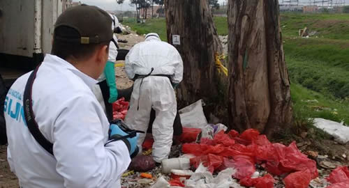 La Policía Metropolitana de Bogotá continúa compromiso de mejorar las condiciones ambientales, y gracias a la información oportuna de la comunidad, quien dio aviso sobre el abandono de desechos peligrosos, se pudo realizar la prevención y recolección de estos elementos en compañía de la Secretaria de Medio Ambiente, quien con personal experto de la Sijin en temas de recolección, utilizaron trajes de bioseguridad y equipos especializados, dando como resultado el levantamiento de más de 500 kilos de material hospitalario.A través de la Unidad Investigativa de delitos contra el Medio Ambiente de la Sijin fueron hallados en la localidad de Kennedy, en el barrio Santa Inés en cercanías al Canal Dindalito, desperdicios hospitalarios que atentaban contra la integridad física de los residentes de la zona y el medio ambiente.En el lugar se encontraron deshechos como: jeringas utilizadas con sus respectivas agujas, tubos de ensayo con rastros de fluidos, entre otros.Este hecho se encuentra en proceso de investigación, ya que se está realizando la verificación para dar con los responsables.De acuerdo al Código de Procedimiento Penal se tipifica el delito ´Contaminación ambiental por residuos sólidos peligrosos´ en el artículo 332A, el cual puede acarrear multas diarias de hasta 50.000 SMLMV y privación de la libertad de 2 a 9 años.Recomendaciones Informar oportunamente al cuadrante o a la línea 123 sobre este tipo de actividades, las cuales pueden atentar contra su integridad física y la de sus seres queridos. Evite que los menores de edad o usted, tengan contacto con estos desechos. No se exponga a la manipulación de estos elementos. La manipulación del material hospitalario deberá ser desarrollado por expertos, con trajes y equipos especializados. No exponga su salud y aumento de la contaminación ambiental, haciendo quemas de estos residuos. No reutilice estos elementos, es perjudicial para su salud.