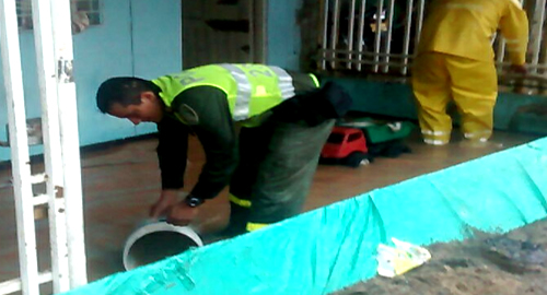 En desarrollo del "Plan Choque' Comunidades Seguras y en Paz", en un acto solidario, los patrulleros del cuadrante tres, pertenecientes al sector de la Avenida Colombia, ayudaron una familia que fue víctima de las fuertes lluvias que amansaron con inundar su residencia ubicada en esta localidad.Las personas afectadas fueron identificados como la familia Flórez, que después de un fuerte aguacero que cayó se vieron inundados por un deslizamiento de tierra que ocasionó la lluvia en la parte inferior de su residencia, de inmediato hizo presencia en el lugar las patrullas del cuadrante número tres, los cuales con palas y estopas de fibra realizaron una barrera para que corriera el agua y no siguiera a afectando al a familia que tenía el agua a más de un metro dentro de su vivienda, de igual manera con baldes ayudaron junto con personal de bomberos a sacar el agua y salvar sus enseres.Este tipo de actividades que realiza la Policía, hacen parte del humanismo que profesan día a día los policiales, no solo en el servicio de seguridad, sino también con aquellas personas que más nos necesitan.