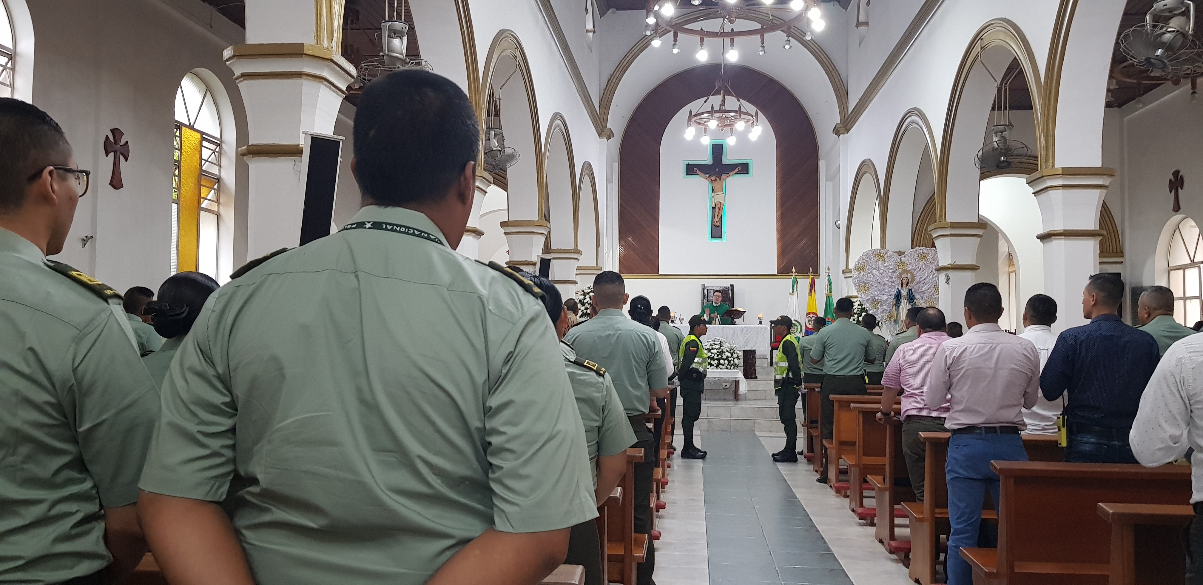 En las instalaciones de la Catedral Nuestra Señora de la Paz, se llevó a cabo el acto litúrgico con el que conmemoramos el aniversario 128 de creación de la Policía Nacional; acto de devoción que fue presidido por el párroco Carlos Hernán Caro, con la presencia de las autoridades militares y la comunidad en general de la capital amazonense.