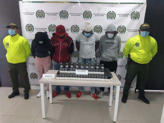 Este resultado operativo se obtiene mediante 5 diligencias de allanamiento y registro a inmuebles por parte de las autoridades, capturando los integrantes de la banda denominada “Los Infiltrators” por el delito de tráfico, fabricación o porte de estupefacientes. Durante las diligencias se encontraron 50 dosis de basuco y 384 frascos de Ketamina por 50 mililitros cada uno, equivalentes a 19.200 mililitros avaluados en $26.880.000 pesos, esta sustancia que de acuerdo a las investigaciones, venía siendo utilizada para la fabricación de la droga conocida como Tucibi (su nombre original es 2C-B que, leído en inglés, podría transcribirse en español como tu-ci-bi), o conocida también como cocaína rosa, la cual, de acuerdo a estudios provoca alteraciones y alucinaciones visuales y auditivas, sensaciones de inquietud y angustia, alteración de la percepción del tiempo y el espacio, cambios repentinos en el estado anímico, incluso fuertes sensaciones de miedo y ataques de pánico.