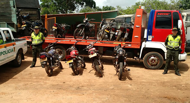 En desarrollo de la operación “Cazador” contra el hurto de vehículos en el departamento del Meta, sobre la vía que une a los municipios de Puerto Gaitán y Puerto López, sector Bateas, unidades de Tránsito de la Policía Nacional sorprendieron a dos hombres con dos motocicletas hurtadas y otras dos con inconsistencias en sus sistemas de identificación, las cuales hacían parte de un lote de 16 motos que eran transportadas con documentos falsos en una volqueta y un remolque desde la vereda Planas.