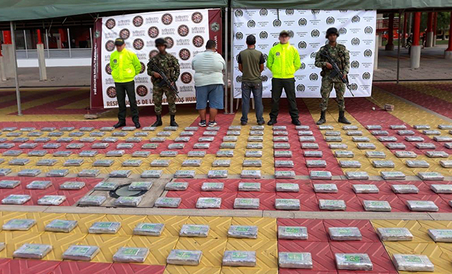 En desarrollo del Plan de Choque “Construyendo Seguridad” y en el marco de la campaña militar y policial “Zeus” contra las estructuras de crimen organizado y el sistema de drogas ilícitas, en las últimas horas, el Departamento de Policía Meta propinó dos golpes contundentes a los eslabones de la cadena del narcotráfico, al lograr en diferentes operativos la captura de cuatro sujetos y la incautación de 462 kilos de clorhidrato de cocaína. Sacando de las calles más de 500 mil dosis personales, como parte de una ‘Democracia Segura’.