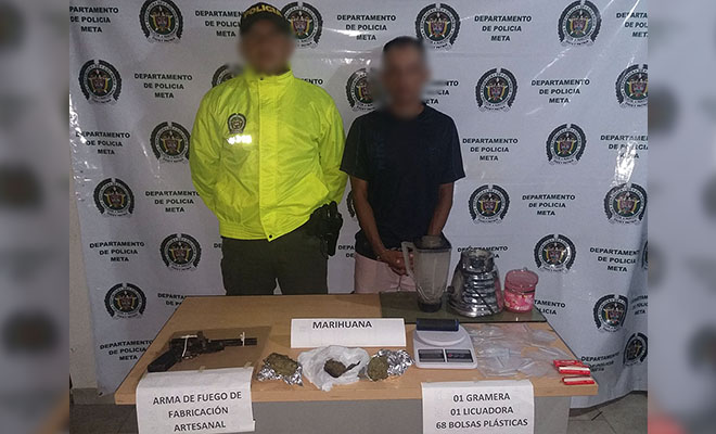 Durante el operativo, también se logró la incautación de una pistola ilegal, de fabricación artesanal, que al parecer era implementada para amedrentar a los consumidores que se negaran a pagar y enfrentar a otros delincuentes que se dediquen al mismo negocio criminal; y 179 gramos de marihuana, una gramera, una licuadora, tres cajas de papel smokin, 68 bolsas plásticas, elementos usados para la elaboración de narcóticos y su dosificación.