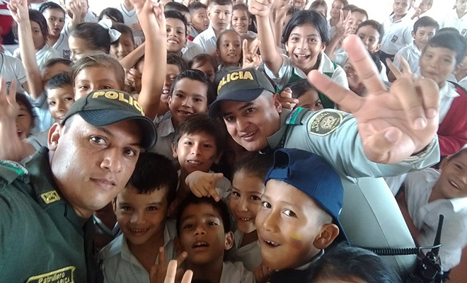 A demás de revivir nuestra historia a través de espacios culturales, los uniformados utilizan pintucaritas para que adultos y niños, porten con orgullo los colores de la tricolor, como símbolo de unidad patria y también, como homenaje a los hombres y mujeres que lucharon y ofrendaron su vida por la libertad de Colombia, y de aquellos que aún siguen trabajando para garantizar unas ‘Comunidades Seguras y en Paz’.