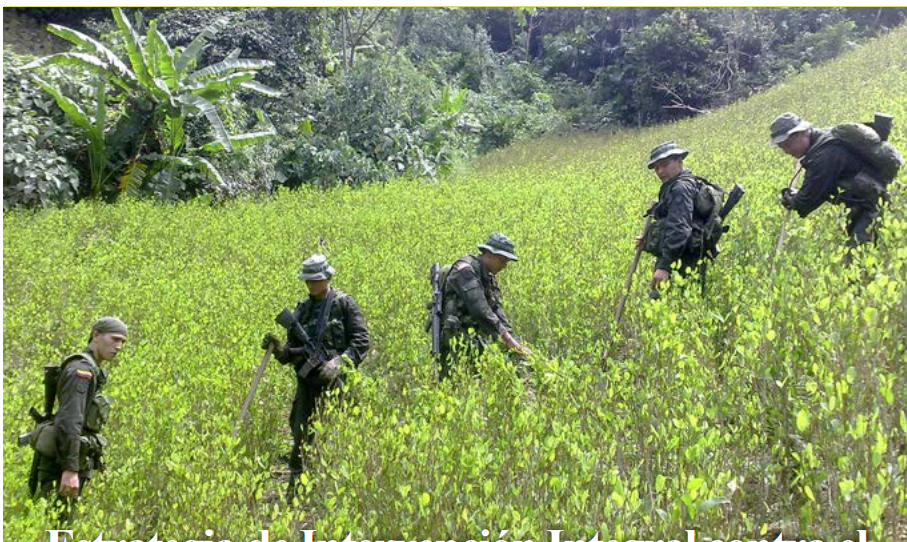 La Estrategia de Intervención Integral contra el Narcotráfico (EICON) persigue cinco objetivos: reducir las áreas afectadas con cultivos ilícitos; afectar núcleos de producción, tráfico de drogas y sustancias químicas; atacar los nuevos actores dinamizadores del problema y sus rentas criminales; orientar la prevención integral en comunidades y territorios afectados por el Sistema de Drogas Ilícitas (SDI) y actuar con enfoque multidimensional, de la mano de todas las autoridades del orden nacional y territorial.