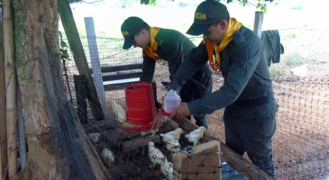 Como parte de las labores preventivas que se vienen liderando en la Zona Veredal de Transición a la Normalidad ‘La Guajira’, ubicada en el municipio de Mesetas, nuestros Carabineros adscritos a la Unidad Policial para la Edificación de la Paz, ponen en marcha la estrategia “Juntos por el Campo” a través de la cual promueven con los campesinos de la región el proyecto productivo de ‘engorde de pollos’.