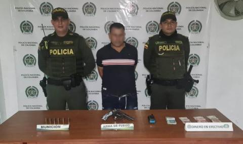 Por lo cual, nuestros uniformados, lo siguen, y metros más adelante lo interceptan, encontrándole en su poder, un arma de fuego ilegal, dinero en efectivo y un radio portátil.