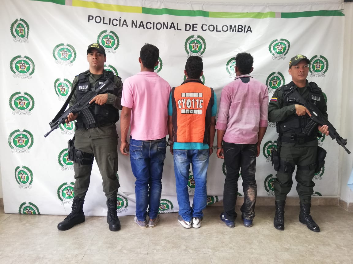 Mediante planes de registro y control tendientes a mitigar los delitos que afectan la seguridad ciudadana, la Policía Nacional continúa su lucha frontal contra la extorsión y la delincuencia en el Magdalena Medio, es así como en Sabana de Torres en vía pública efectivos del GAULA logran la captura de tres hombres “Wilder” de 30 años de edad, “Ricardo” de 27 años de edad y “Ever” de 26 años quienes se dedicaban a la comisión extorsiones en la modalidad clásica a comerciantes, mediante modalidad presencial y llamadas extorsivas, en las cuales le exigían a sus víctimas mediante amenazas, sumas de dinero que oscilaban entre los $1.000.000 y $10.00.000 millones pesos, a cambio de no atentar en contra de su vida o la de sus familiares, dinero que debía ser entregado personalmente a los victimarios