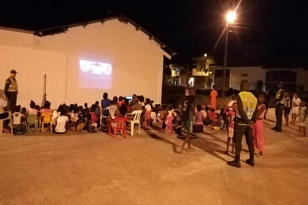 Con el fin de generar espacios de sana diversión y de integración familiar, en sectores vulnerables del Departamento del chocó realizamos el programa “Cine al Parque” liderado en el Departamento por la unidad de Prevención y educación ciudadana