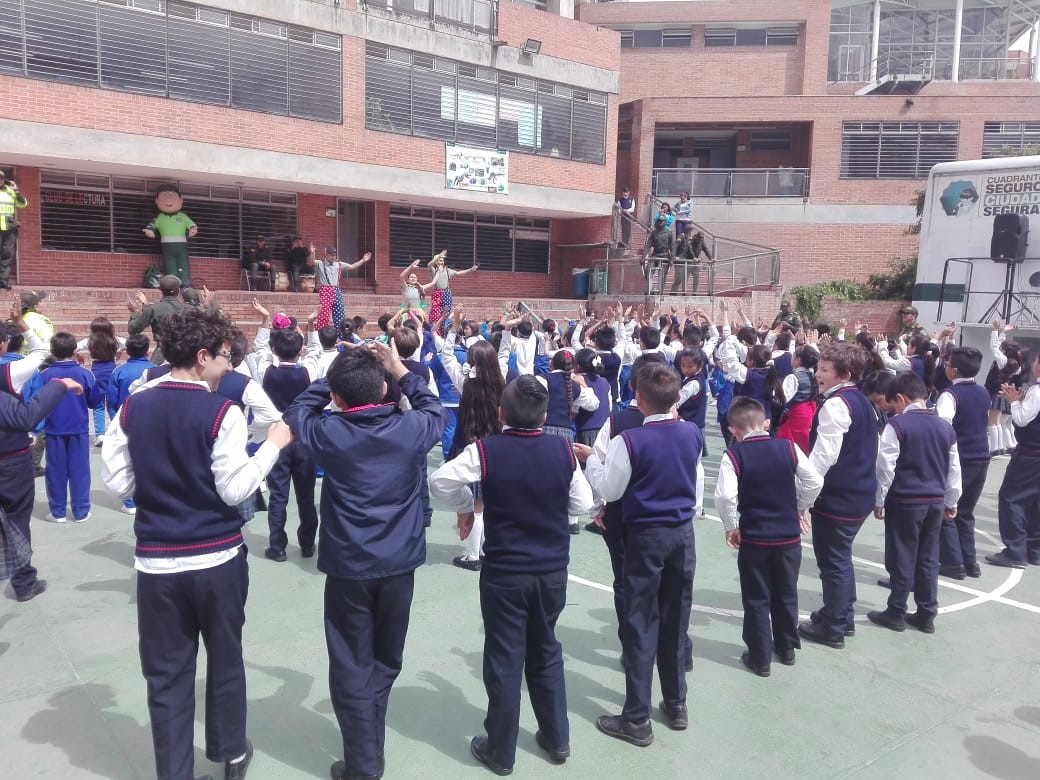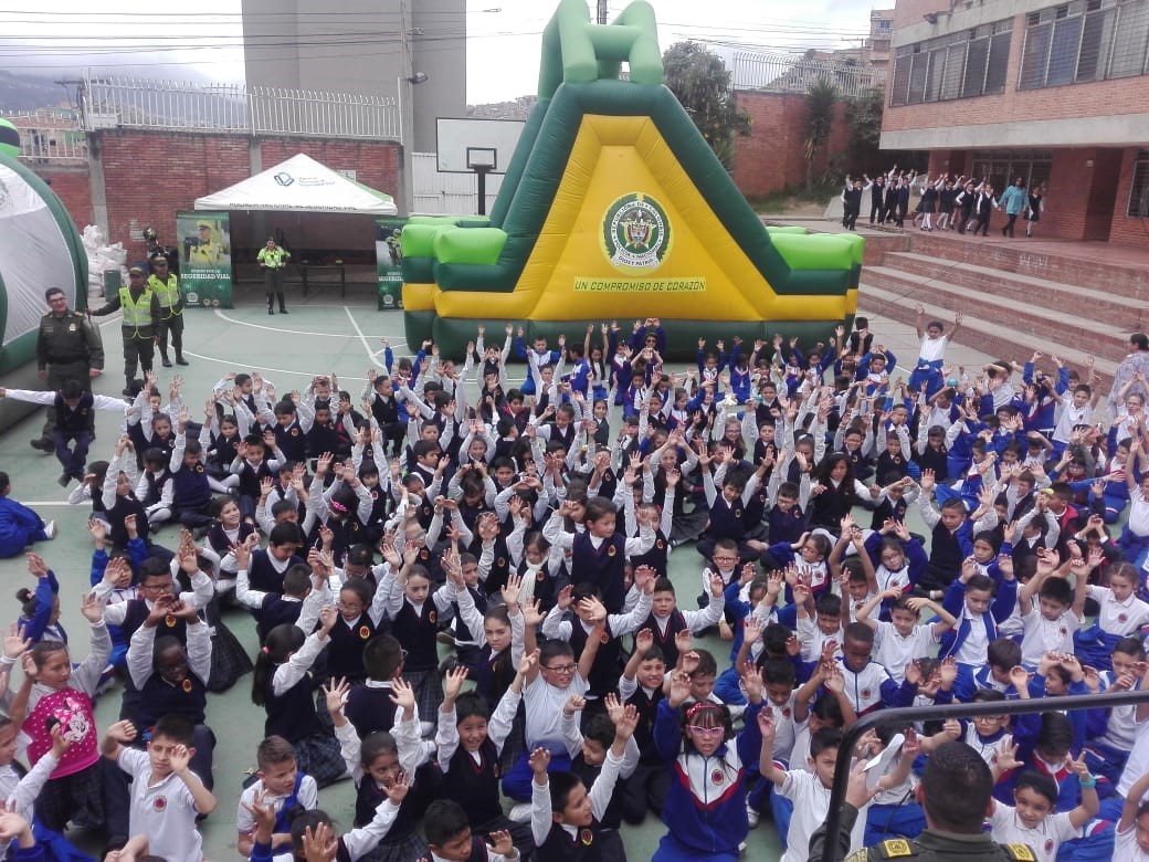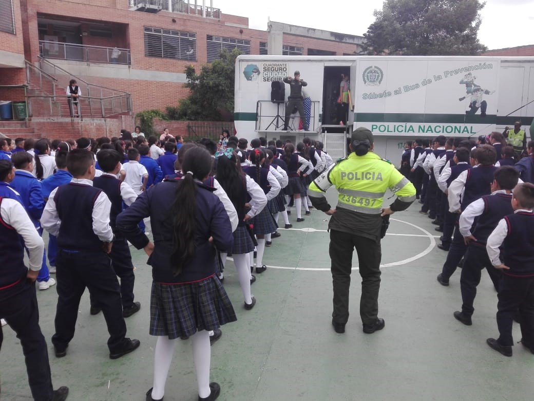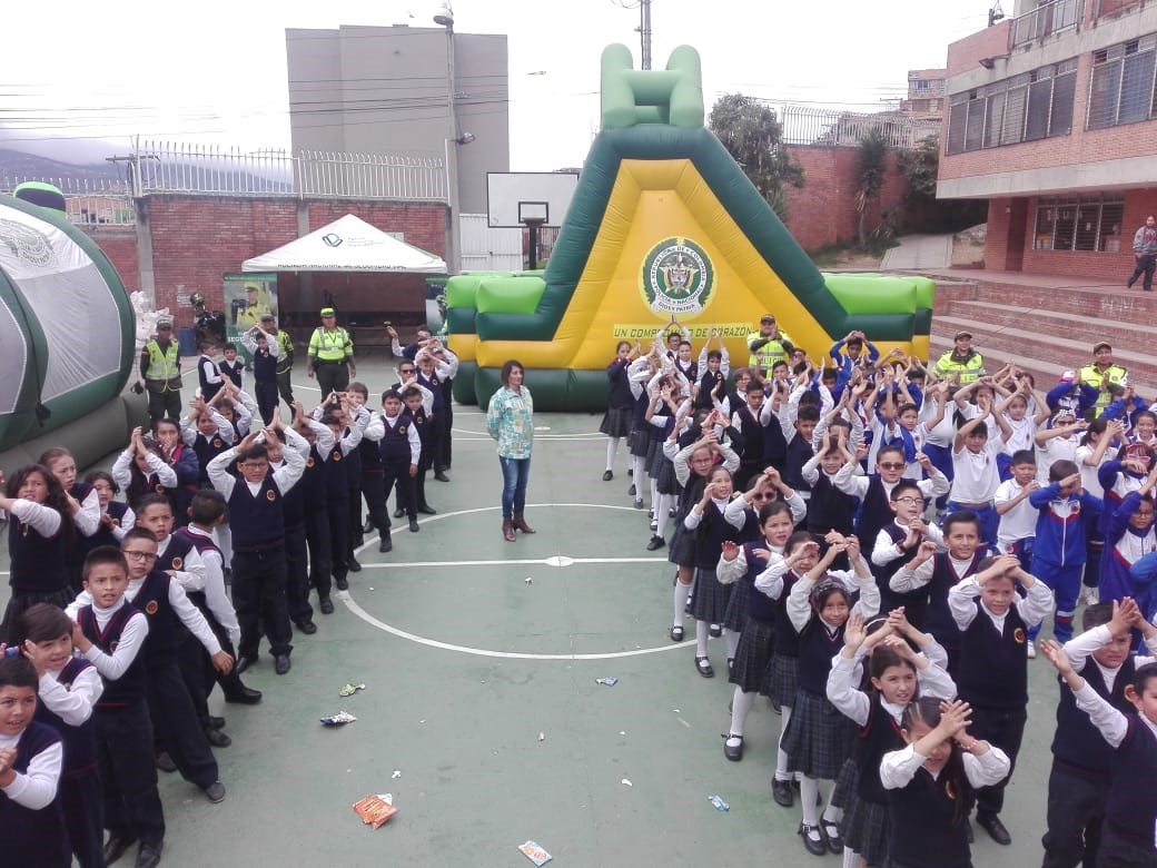 La policía Nacional por medio del Grupo de Vínculos y Relaciones estratégicas de la Oficina de Comunicaciones Estratégicas  COEST de la Dirección General llevó su parque móvil y su grupo de recreación, previa coordinación con el grupo de prevención del COSEC 2 y el personal del grupo de prevención de la dirección de protección y servicios especiales y prevención seccional de transito de la Metropolitana de Bogotá,  llegamos a este sector de la localidad de Ciudad Bolívar, donde realizamos la clausura del programa escolarizado en prevención de drogas y la violencia  de la feria ciudadana.