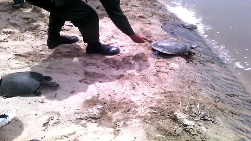 Hasta una playa del río Orteguaza que conduce hacia la vereda Venecia, sector Larandia llegaron funcionarios de Corpoamazonia, grupo de protección ambiental y ecológica para poner a salvo 20 tortugas de la especie hicotea (podochermis), las cuales la mayoría fueron incautas y otras entregadas voluntaria por la comunidad, quienes las tenían en condiciones desfavorables para su existencia.