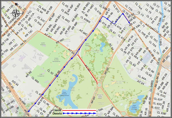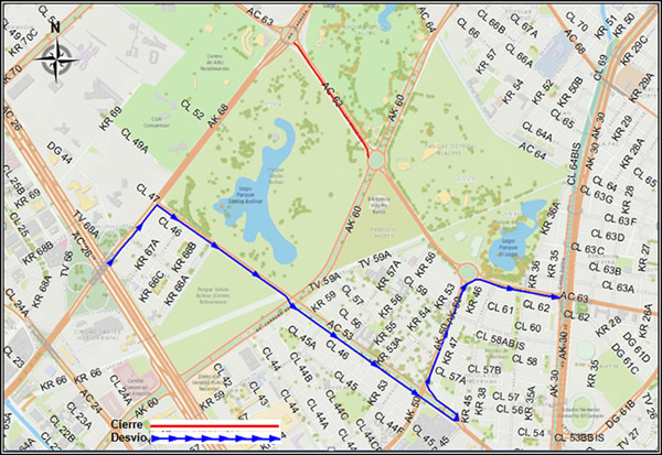 Mapa 1 – Desvío Av. Calle 63 sentido occidente-oriente vehículos provenientes del occidente de la Av. K 68