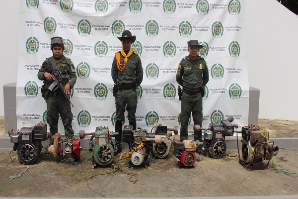 En desarrollo del Plan de Choque, el que la hace paga “construyendo seguridad” y la Estrategia de Intervención Integral Contra la Minería Ilegal el Departamento de Policía Chocó, a través del personal de Protección Ambiental, Dirección de Carabineros y Unimil, lograron la incautación de ocho motores utilizados para la explotación ilícita de yacimientos mineros.