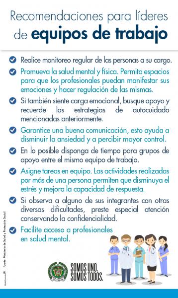 Estas son algunas recomendaciones dirigidas a los líderes equipos de trabajo para aplicar en el cuidado de la salud.