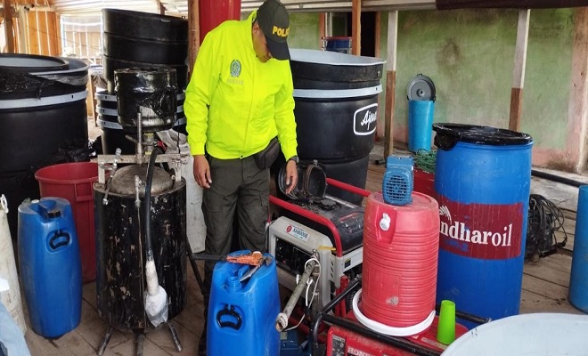La Policía Nacional, en una ofensiva contundente contra las finanzas de los grupos criminales, logró la ubicación y posterior destrucción de un laboratorio para el procesamiento de clorhidrato de cocaína, en la vereda Carcasí del municipio de Cáchira.