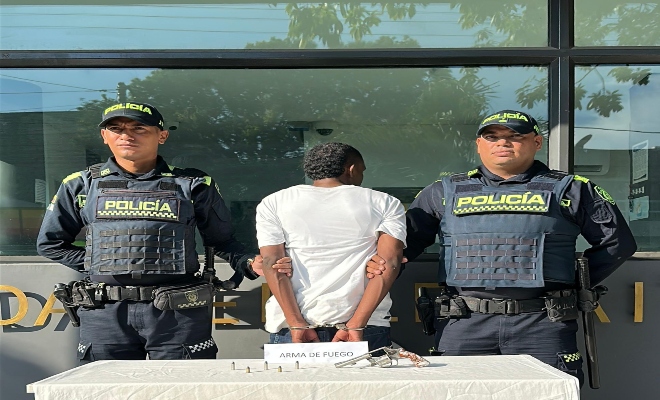 En desarrollo de planes contra el hurto, uniformados de la Policía Nacional en Cartagena lograron interceptar y capturar en las últimas horas a un sujeto por los delitos de porte ilegal de armas de fuego y hurto.
