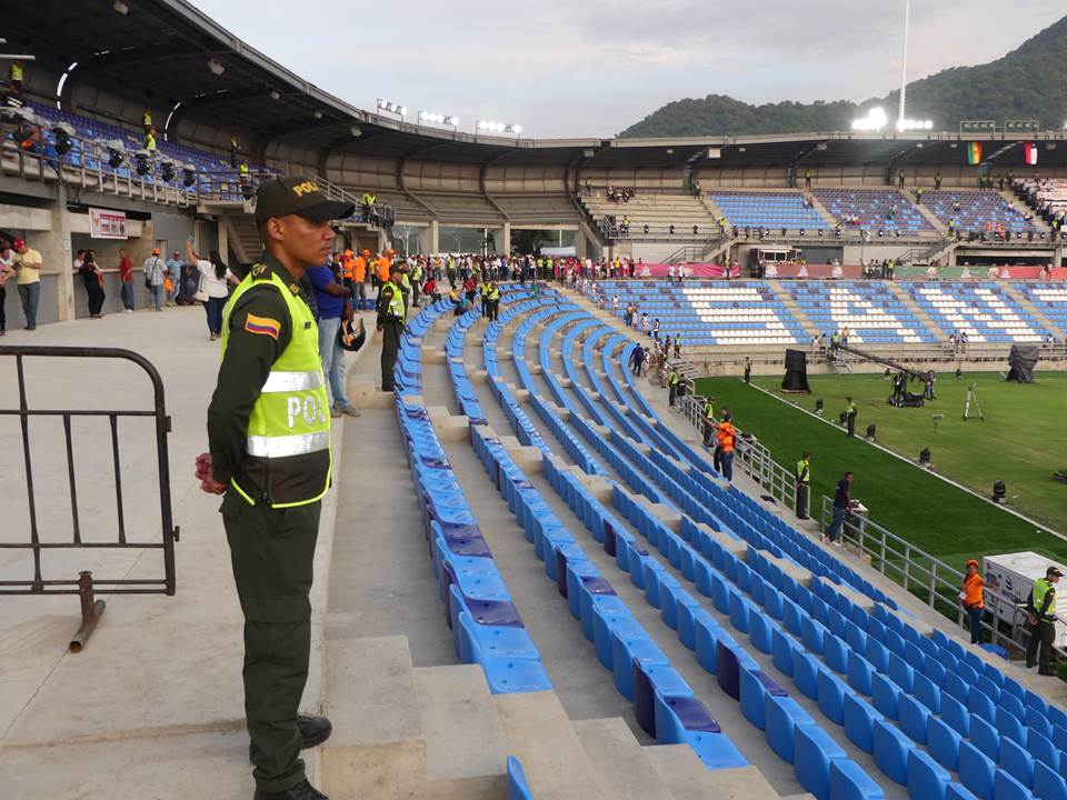 Nuestros uniformados para este encuentro deportivo estuvieron ubicados estratégicamente tanto fuera como dentro del estadio, realizando registros permanentes a todas las personas que ingresen al recinto, así como también el control al porte de armas de fuego, venta y tráfico de estupefacientes y cualquier otro tipo de actividad delictiva que pudiera llegar a alterar el orden público, antes, durante y después del partido. Así mismo, en compañía de la Secretaría de Seguridad Ciudadana, se tuvo un dispositivo especial en todos los puntos de la ciudad, donde hubo aglomeración de hinchas viendo el partido, todo esto con el objetivo de garantizar que la fiesta del fútbol se viva en paz.