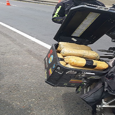 Gracias a un trabajo asociado e información suministrada por el personal de inteligencia, se logró la detención e incautación de 69 kilogramos de cocaína transportados en una motocicleta con destino a la ciudad de Medellín.