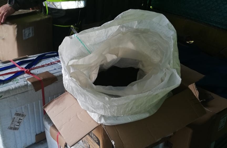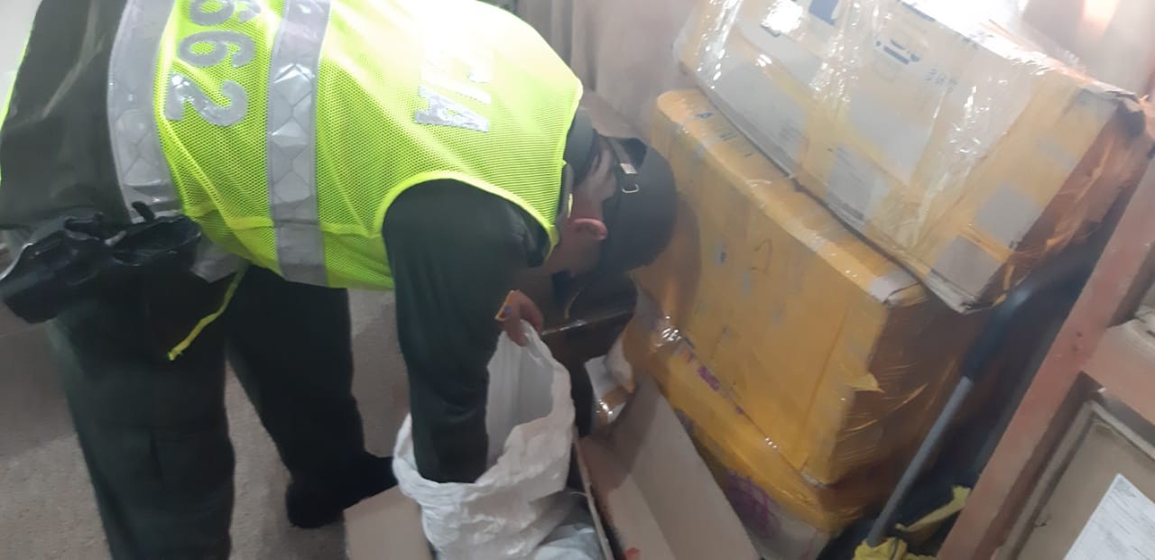 Profesionales de la Policía Nacional adscritos a la Policía Aeroportuaria y Guías Caninos de la institución, en Cumplimiento al Plan Choque Fase III “Construyendo Seguridad”, durante las labores de registro y control a la carga almacenada en las bodegas de las empresas que prestan el servicio de encomienda en el aeropuerto Alfredo Vásquez Cobo de la ciudad, se incautaron de 54.94 kilos de pergamanto de potasio avaluados en $ 4´800.000 pesos millones de pesos. Los químicos fueron remitidos en remesas, modalidad de encomienda a través de vuelo de carga, “camuflados” y etiquetados como productos agrícolas.