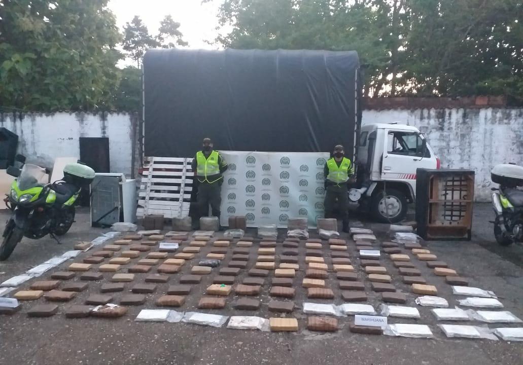 La Policía Nacional, a través de las unidades de la Seccional de Tránsito y Transporte en la vía Rio Ermitaño - La Lizama sector El Cruce lograron la incautación de 250.000 dosis de marihuana las cuales venían camufladas en una caleta dentro de un colchón, nevera, lavadora y demás enseres que eran transportadas en un camión que simulaba trasladar un trasteo el cual fue hallado abandonado a un costado de la vía nacional.