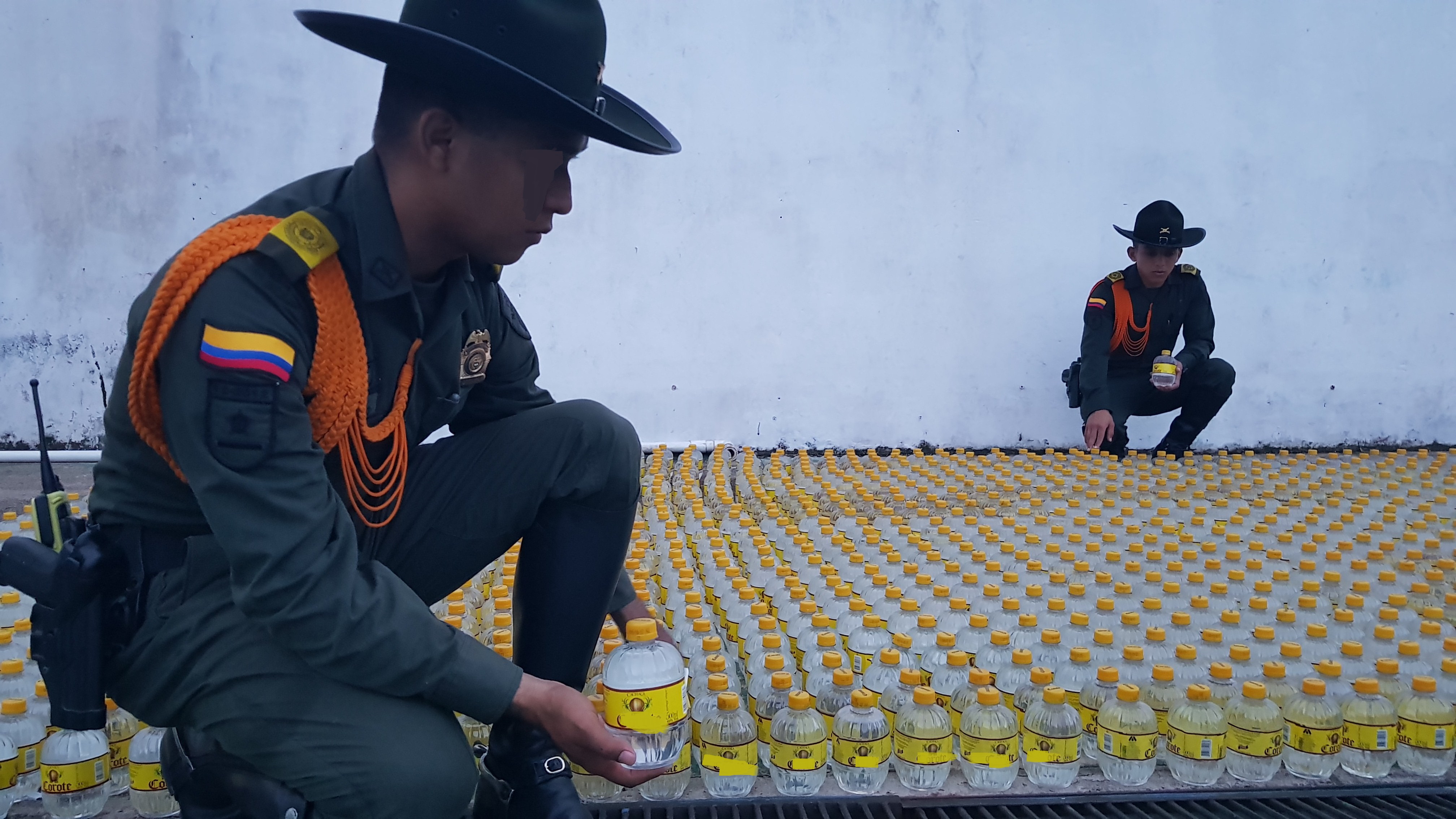 En cumplimiento al Plan Choque Fase III “construyendo seguridad”, miembros de la Policía Nacional adscritos a la especialidad de Carabineros y Guías Caninos en el departamento del Amazonas, mediante actividad de registro y control desarrolladas en las bodegas de las empresas que prestan el servicio de mensajería y carga, en el Aeropuerto Internacional Alfredo Vásquez Cobo; se logra la incautaron de 1941 unidades de botellas en plástico de licor, marca Cachaza Corote 500 ml cada una, con volumen alcohólico de 39 %, sin fecha de fabricación y vencimiento indeterminado, producto de fabricación brasilera.