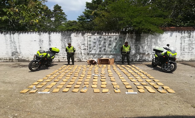 En desarrollo del ‘Plan de Choque’ ‘el que hace la paga´ en su quinta fase, unidades de la Seccional de Tránsito y Transporte, lograron la incautación de 119 paquetes de marihuana.