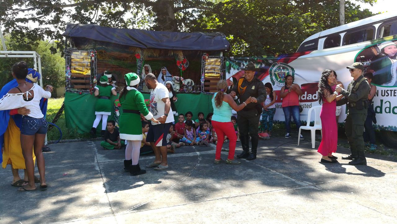 El Departamento de Policía Cauca en el marco del Plan Navidad ‘Inspirados en Usted´, empezó el acompañamiento mediante un pesebre móvil a los diferentes municipios del Departamento en donde nuestros uniformados compartirán entorno a las jornadas de integración que se desarrollaran con la finalidad de fortalecer los lazos de confianza entre la comunidad y nuestra institución, llevando a sus ciudadanos por parte de nuestras mamas Noel y el grupo de carabineros y guías caninos un espectáculo canino, pinturitas, regalos, llevando el mensaje de una navidad rural segura y en paz.
